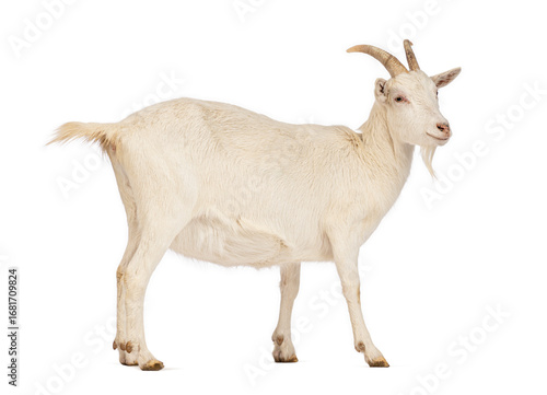 Fototapeta premium White goat walking on white background