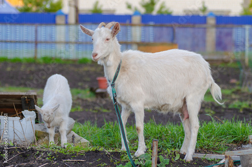 Obraz premium White goat with Cub of goat