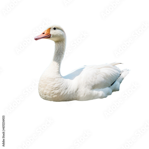 © AkuAku, Fototapeta premium White goose swimming in a mountain park, isolated on a turquoise background.