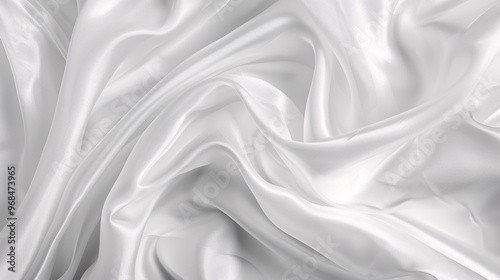 © mahamad, Naklejka premium White-gray satin texture that is white silver fabric silk panorama background with a beautiful soft blur pattern.