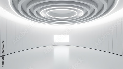 Obraz premium white grey 3D empty circle room with circle line white Ai Generated