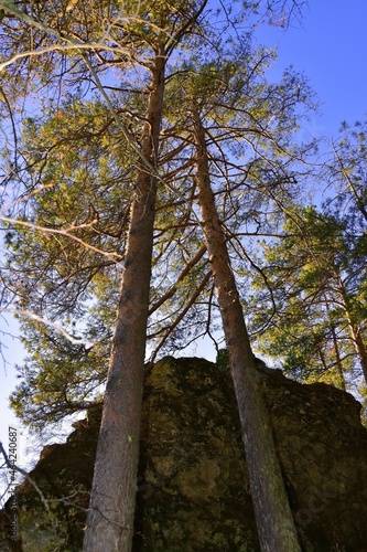Naklejka premium White gypsum rocks in the forest above the Sylva river in the Ermak tract