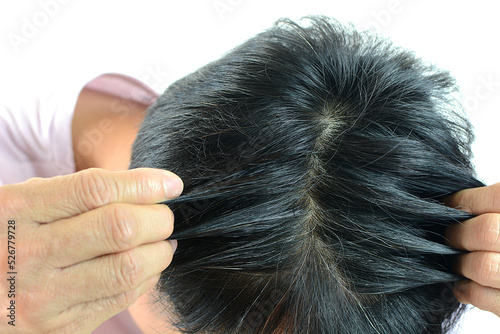 © jpjengs, Obraz premium White hair problems in men, asian man with white hair, white hair or hair loss problem.