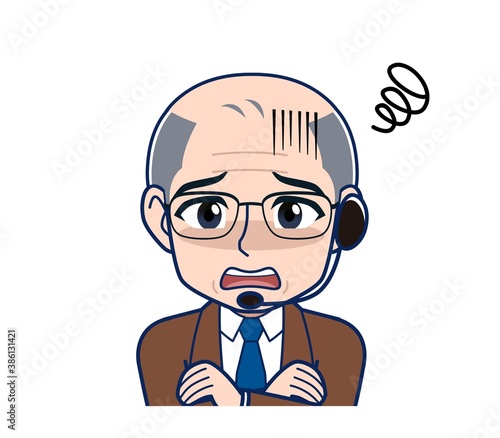 © su_cocoroe, Fototapeta premium White-haired man in green short sleeves