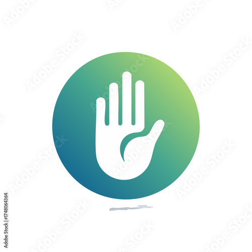 Fototapeta premium White hand icon on a green and blue gradient circle background.