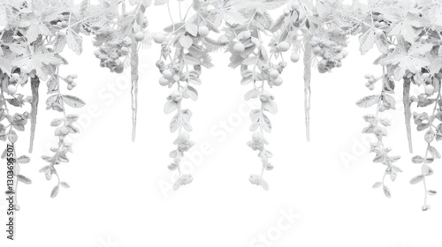 © Nawab stock, Obraz premium White hanging icicles frame border isolated on white