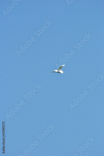 © chandra, Fototapeta premium white heron flying with blue sky in the background