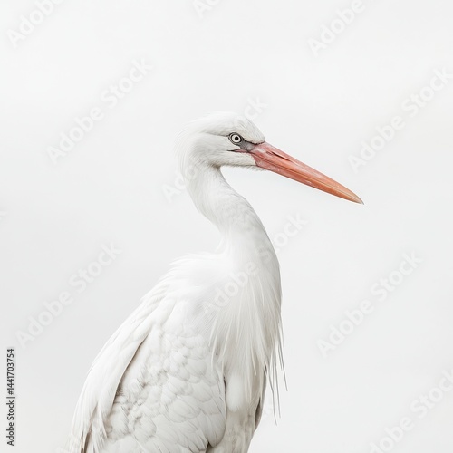 © Yothin, Fototapeta premium White Heron Portrait Against Bright Background