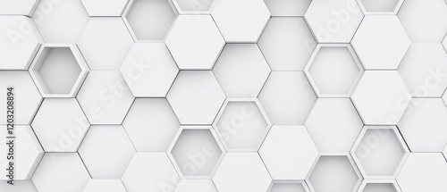 © Fuljan, Fototapeta premium White Hexagon Background with Copy Space. Made with generative AI