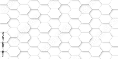 Naklejka premium White hexagon tiles abstract background vector digital art 3d shadown...