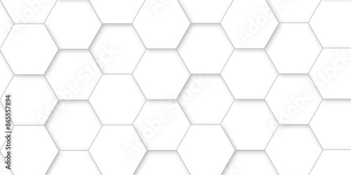 Fototapeta premium White hexagon tiles abstract background vector digital art 3d shadown...