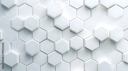 © Jojo*, Naklejka premium White Hexagonal Geometric Pattern Wall