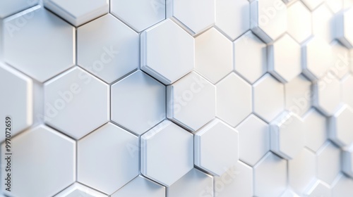 Fototapeta premium White hexagonal tiles with a light texture create a subtle 3D effect on the...