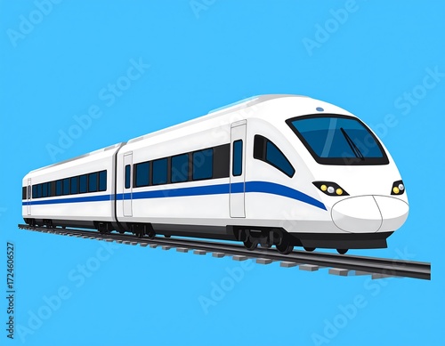 © razyta, Naklejka premium White high-speed train on tracks (1)