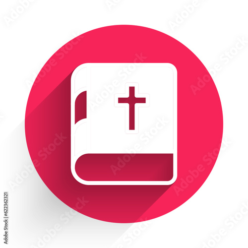 Fototapeta premium White Holy bible book icon isolated with long shadow. Red circle button. Vector