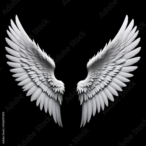 © jack, Fototapeta premium White Holy Wings Close-up on Black Background & angel wings