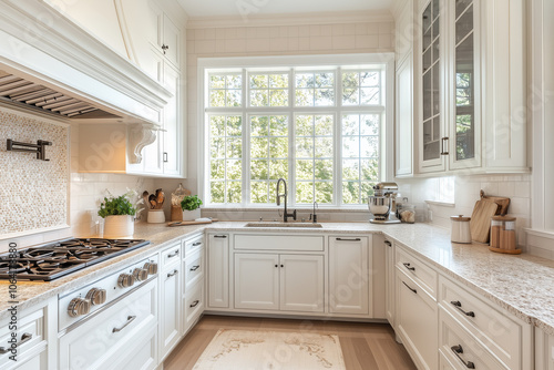 © Kanurism, Fototapeta premium White home kitchen interior with cooking cupboard
