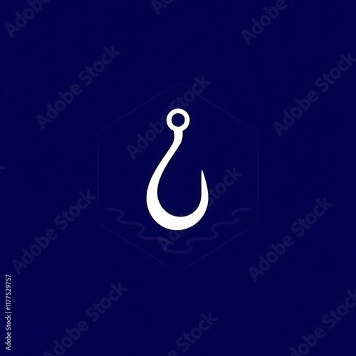 © Michel, Obraz premium White Hook Logo Design: A minimalist design for a hook on a navy blue background. The hook is stylized and modern with waves beneath it.
