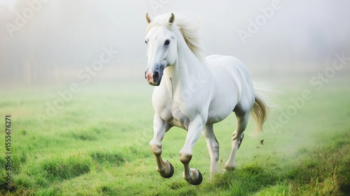 © Facai, Obraz premium White horse galloping across a field, embodying freedom and wild spirit