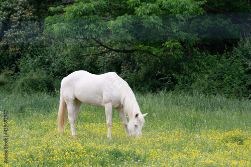 © World Travel Photos, Fototapeta premium White Horse Grazing in Pasture