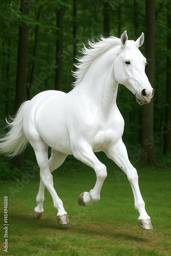 © Pradnya147, Obraz premium white horse in the field
