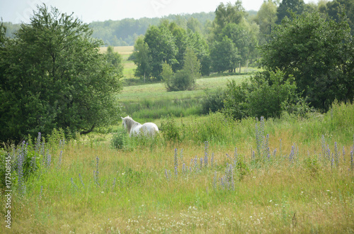 © Halyna, Fototapeta premium White horse in the nature