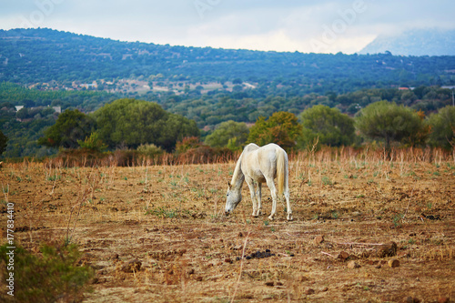 © Ekaterina Pokrovsky, Naklejka premium White horse on pasture in Sardinia
