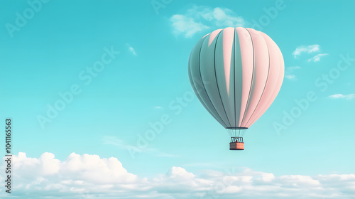 © Siwanart, Naklejka premium White Hot Air Balloon Soaring Through Blue Sky with Clouds