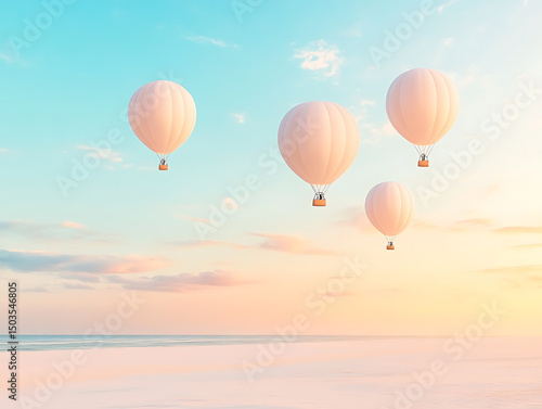 Naklejka premium White hot air balloons over beach.