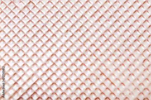 © ninell, Fototapeta premium White hot chocolate on the wafer. Waffle covered with condensed milk close-up.