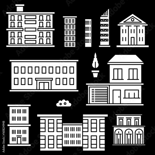 Obraz premium White houses icons on black backgrond