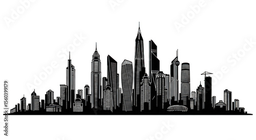 Fototapeta premium White Illuminated City Skyline Silhouette Against Black Background Modern...