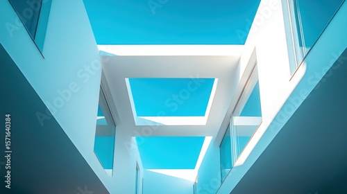 © Lemdah, Obraz premium White interior corridors, skylights, bright blue sky