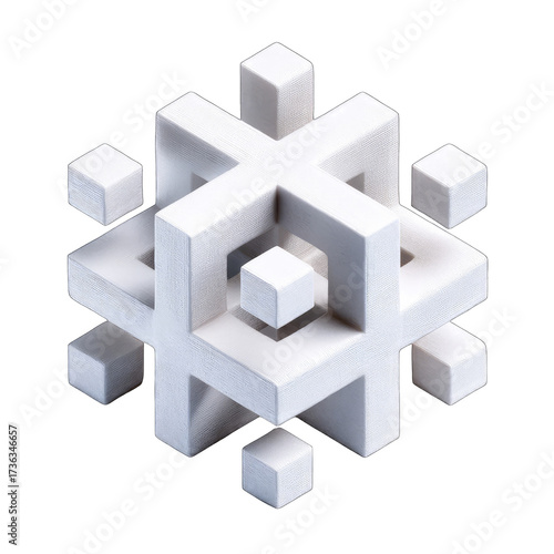 Obraz premium White, intricate, 3D, geometric, puzzle-like structure