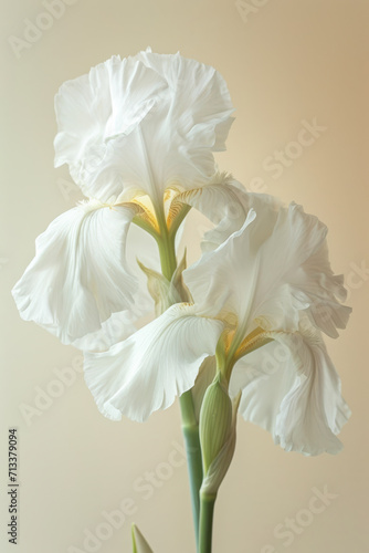 © Ema, Obraz premium White iris flower soft elegant vertical background, card template