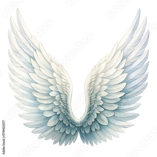 © Moriam, Obraz premium White isolated angel wings vector illustration design with heart and feather elements