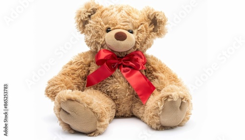 © LimeSky, Obraz premium White isolated teddy bear wearing red bow