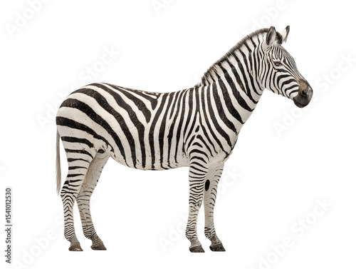 © afifa, Fototapeta premium White isolated zebra with black stripes standing profile.