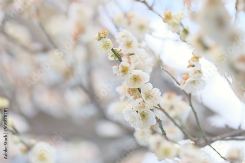 © 百合 須藤, Obraz premium white Japanese apricot blossom in full blooming
