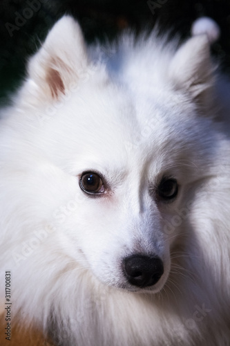 © tenrec, Fototapeta premium White Japanese Pomeranian - muzzle close-up
