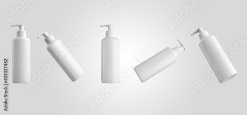 © olegphotor, Fototapeta premium White jar mockup with trigger, empty container for design presentation, product advertising.