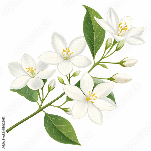 Fototapeta premium White jasmine flower branch watercolor illustration showcasing elegance and...