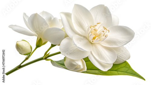 © Shohidul, Obraz premium White jasmine flower for nature cut out isolated on white background PNG. AI GENERATED.