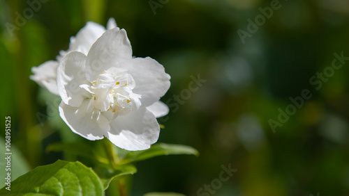 Fototapeta premium White jasmine flower in the sun rays.