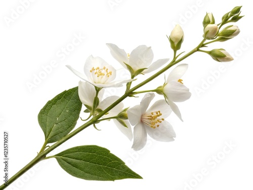 Fototapeta premium White jasmine flower stem, isolated against a plain background, demonstrating...