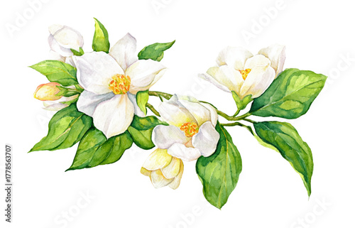 © miht3325, Obraz premium White Jasmine Flower Watercolor Illustration on transparent background