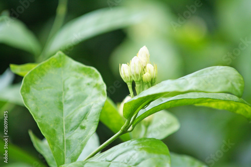 © Amphawan, Obraz premium White jasmine flowers blooming in natural garden background