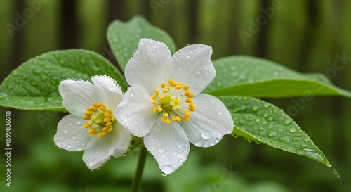 © Kaalia, Obraz premium White Jasmine-Like Wildflower with Leaves