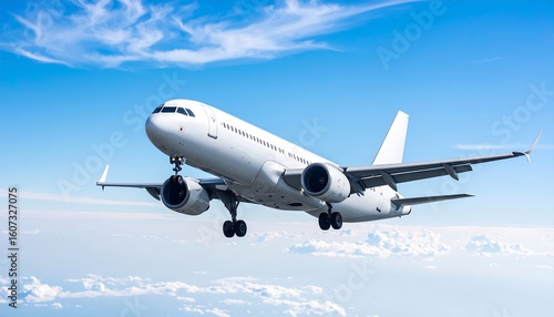 © Berlian, Fototapeta premium White jetliner in flight above fluffy clouds