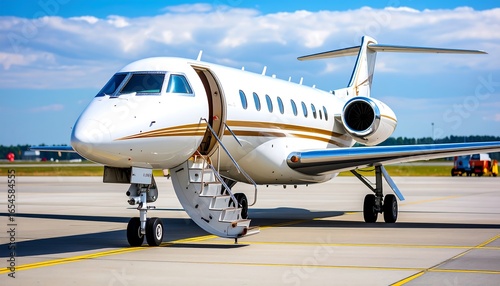 Fototapeta premium White jetliner on tarmac, sunny day